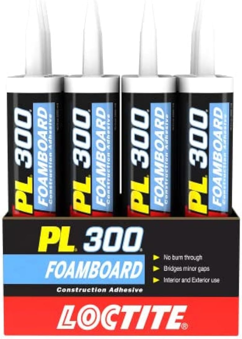 Loctite PL 300 Foamboard Adhesive is a high-performance, solvent-free adhesive designed specifically for bonding foam insulation boards to various construction materials. Its low-VOC formula ensures compatibility with foam panels such as polystyrene (EPS, XPS) and polyurethane without melting or damaging them. Engineered for strength and safety, PL 300 provides a durable, long-lasting bond on wood, drywall, concrete, brick, and metal surfaces. Ideal for both interior and exterior applications, it offers excellent grab and quick initial tack, reducing the need for fasteners during insulation installation. This adhesive is moisture-resistant and remains flexible after curing, allowing it to handle temperature changes and movement in walls or foundations. Perfect for basements, attics, crawl spaces, and energy-efficient construction projects, it helps create an airtight, insulated barrier that improves home efficiency. Easy to apply with a standard caulking gun, Loctite PL 300 Foamboard Adhesive delivers professional-grade results and dependable performance trusted by builders and contractors worldwide.