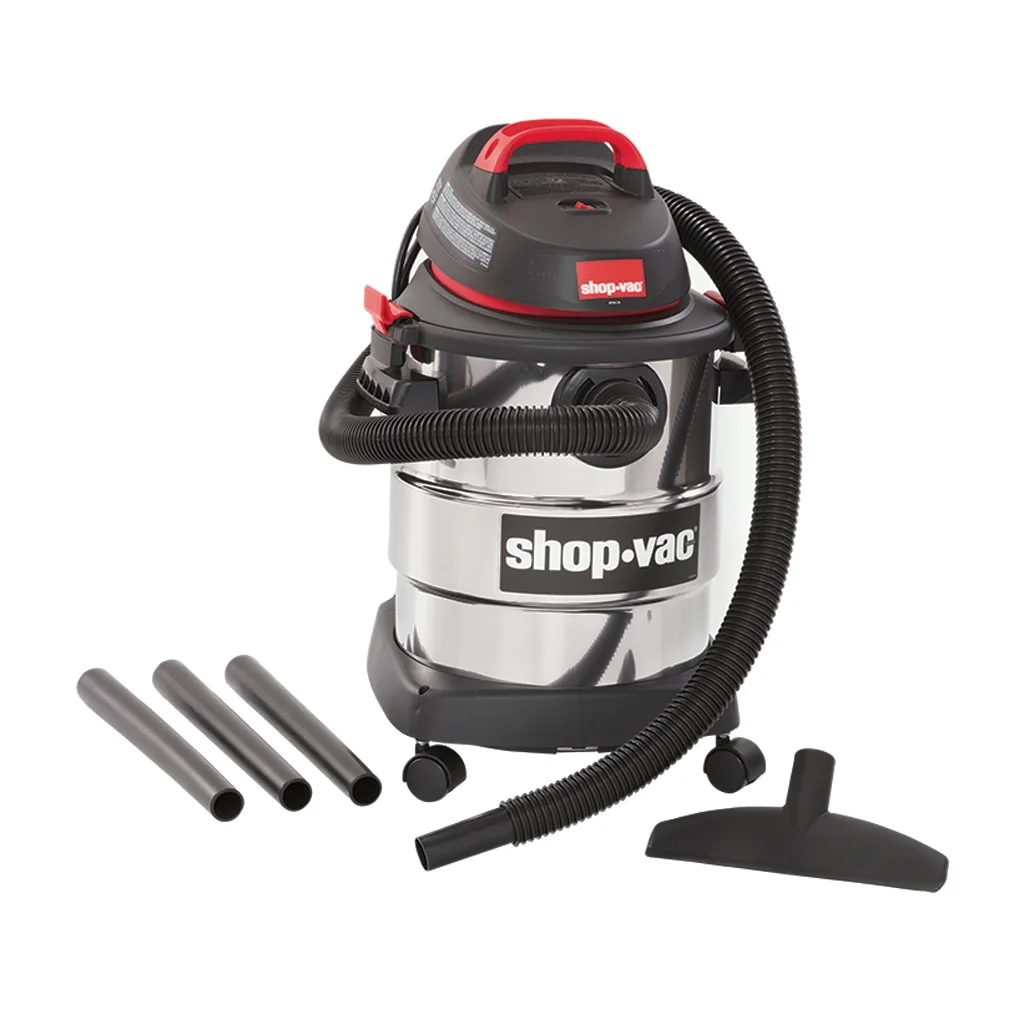 The Shop-Vac 6-Gallon Wet/Dry Vac delivers powerful, versatile cleaning performance for both wet and dry messes in homes, garages, and workshops. Equipped with a durable stainless-steel tank and a high-efficiency motor, it provides strong suction to handle sawdust, debris, and liquid spills with ease. Its 6-gallon capacity allows extended cleaning sessions without frequent emptying, while the compact design and top-carry handle ensure effortless portability. Perfect for DIY enthusiasts, contractors, and homeowners, this vacuum includes multiple attachments such as a utility nozzle, crevice tool, and extension wands for precise cleaning in tight or large spaces. The built-in blower port quickly converts the unit from vacuum to blower for clearing leaves or dust from work surfaces. Designed for long-term durability and reliability, the Shop-Vac 6-Gallon Wet/Dry Vac is an indispensable addition to any workshop or garage setup—keeping your workspace clean, safe, and ready for the next project.